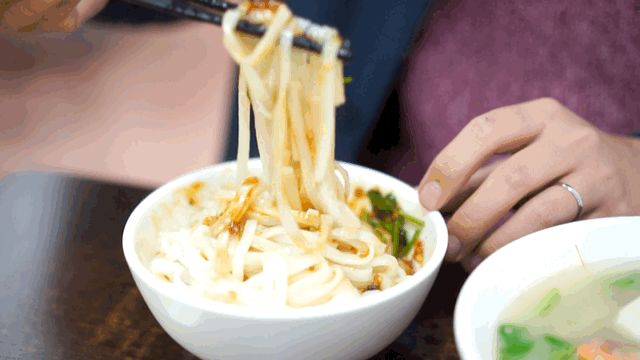最后以喷香的猪肉末作浇头,再洒一把香葱,是外地难以吃到的味道。