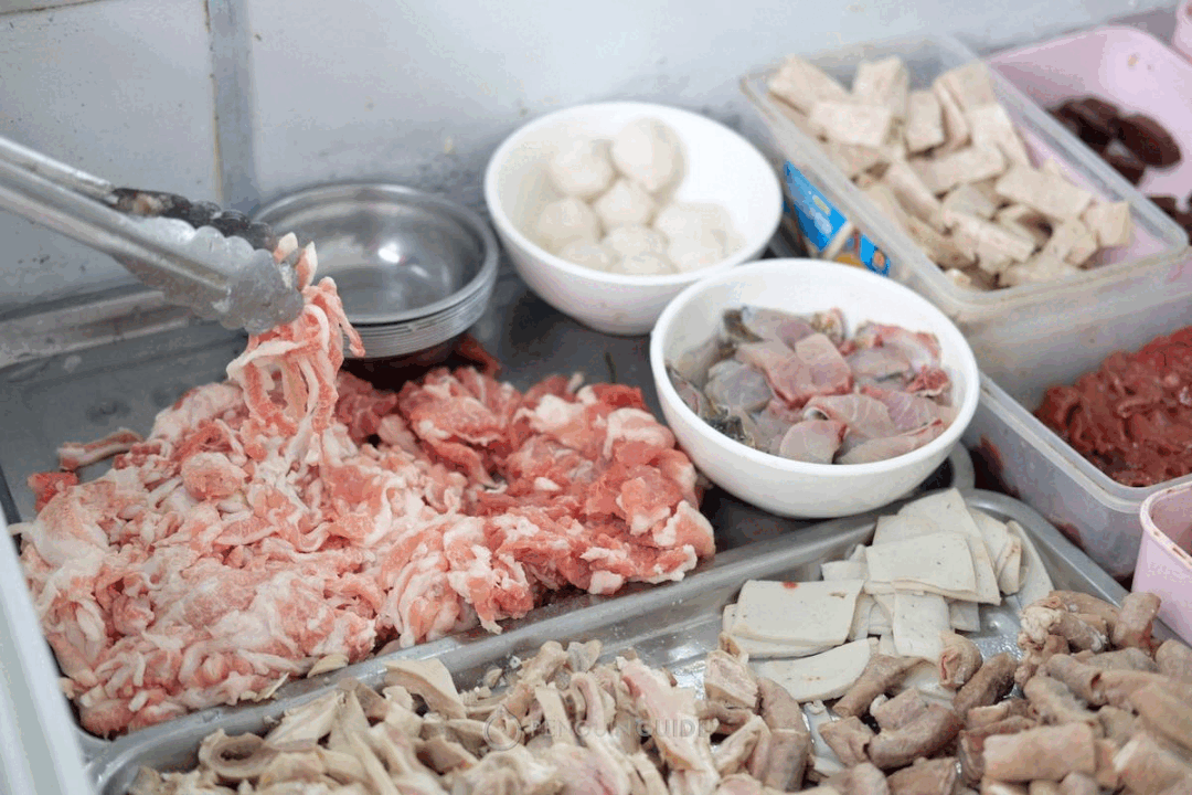 “火足”这个字是潮汕话,指的就是以汤焯熟食材,一般是搭配粿条、粉面吃。
