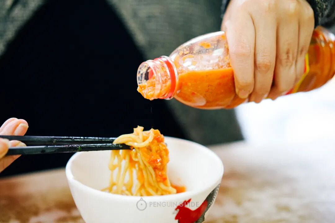 小店还配了梅州当地常用的辣椒酱,拌进腌面里解腻增香。