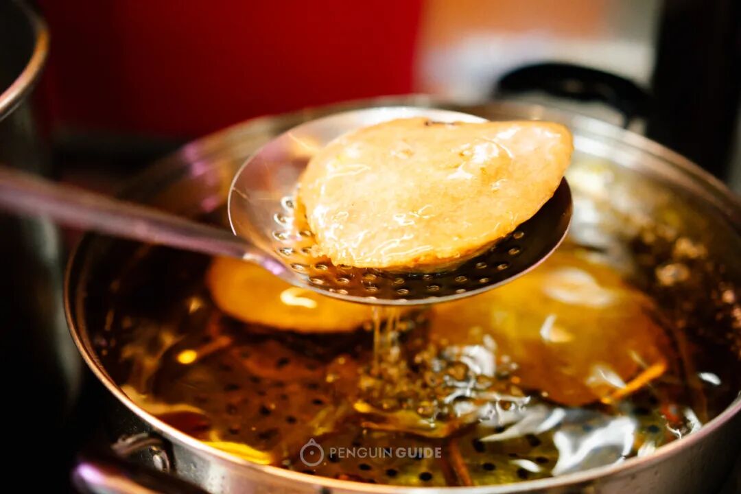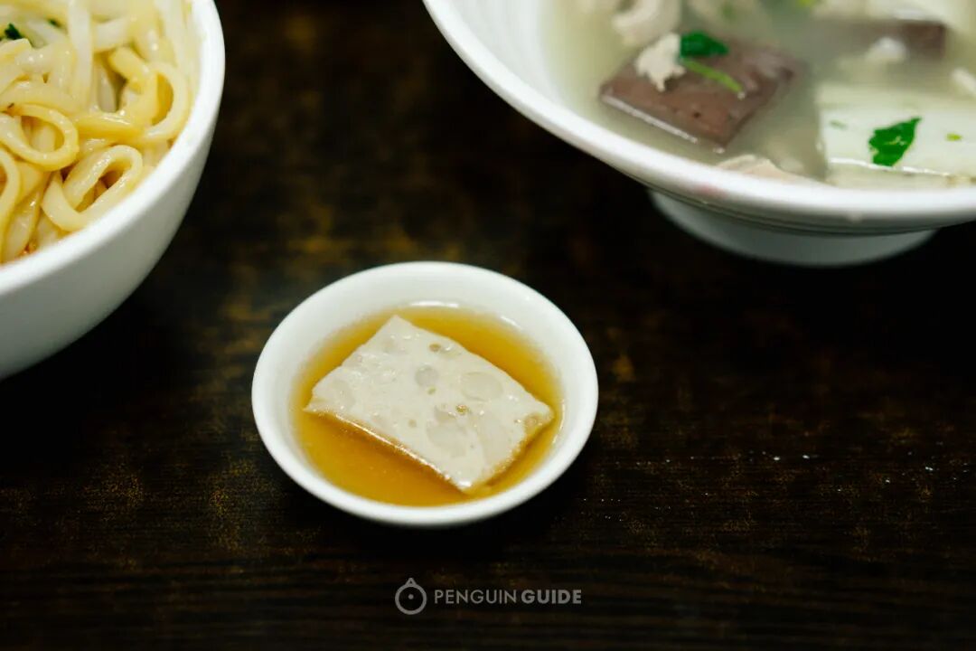 再推荐一份店家乡下手工制作的胡椒猪肉饼,你可以理解为另一种形态的猪肉丸,都是以猪绞肉加入面粉制作,但这家还加入手切的肥肉,一口咬下,筯道之余会爆出浓郁的猪油香气。