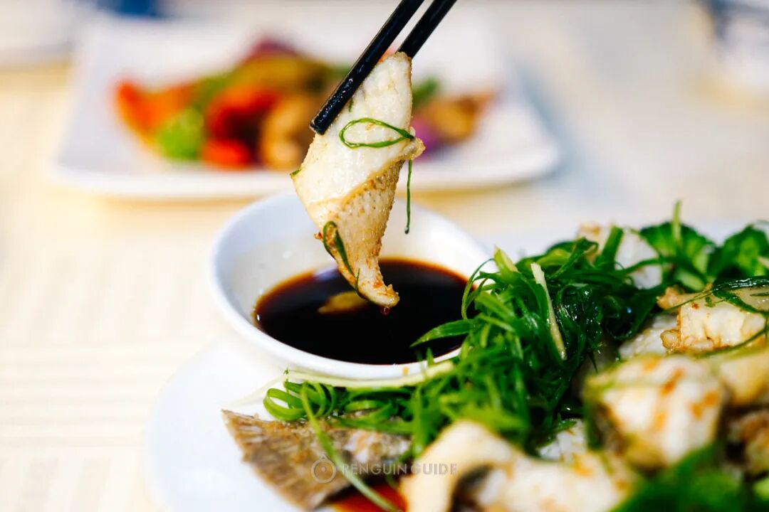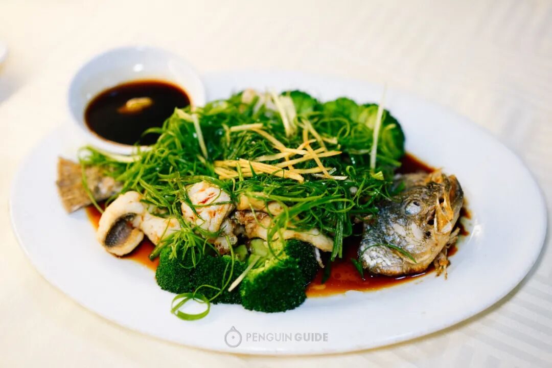 身为祖藉粤西人士,对它也不是没有一些小嘀咕啦。粤西当地的豉油最香的做法,是上桌前还要起火炝一炝油,把风味推向最高,可惜这里的沙姜豉油是提前调好的。