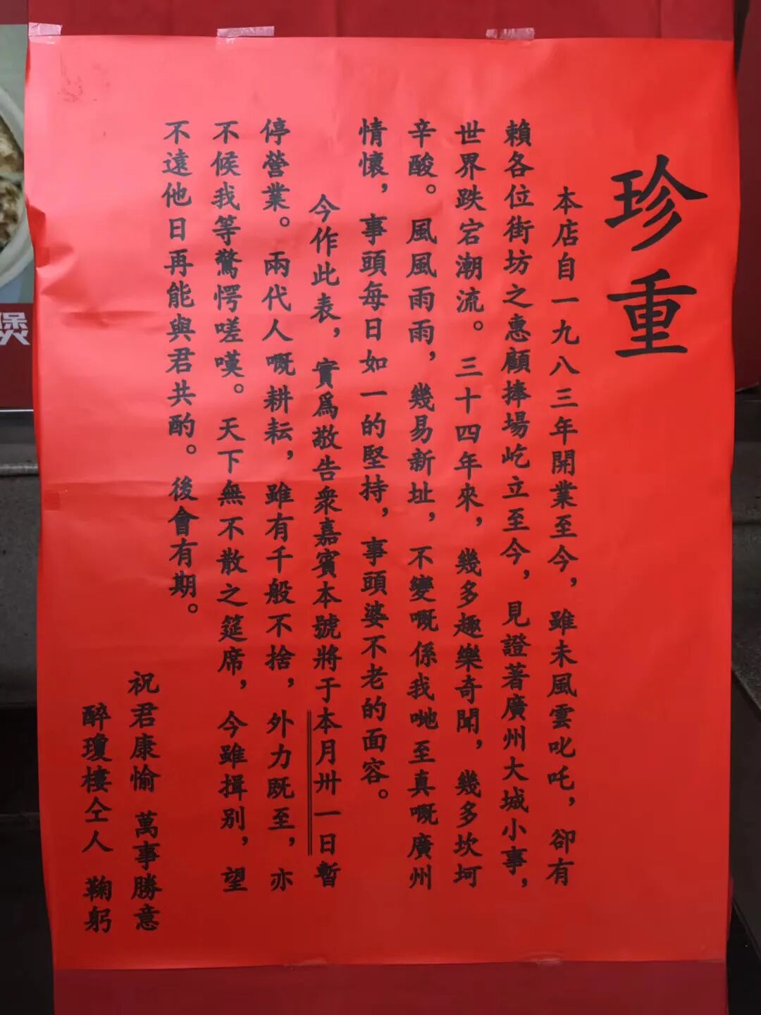醉琼楼的作风极其低调,数十年间默默经营,直至2017年的结业时刻,一纸少东家写的告别启事,令醉琼楼瞬间成为当时餐饮界热搜,是开业34年来最备受关注的一次。