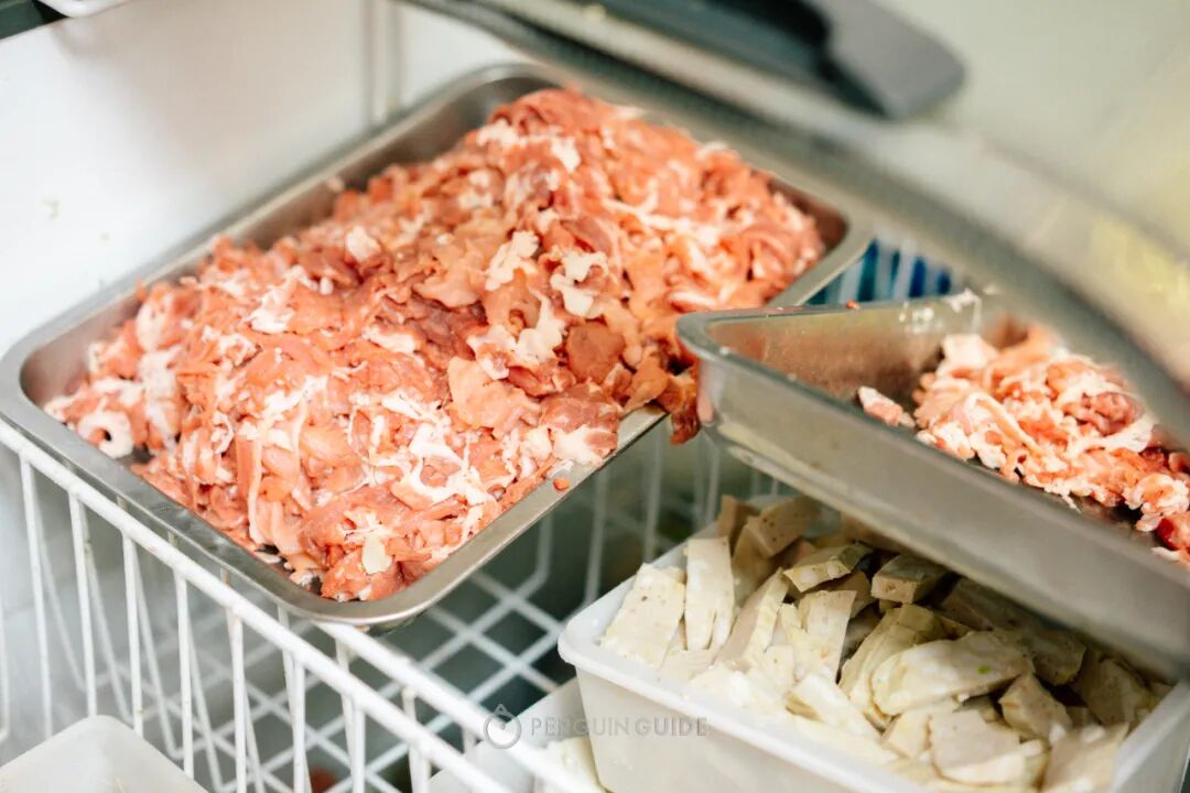 尤其是猪肉,交到潮汕人手中,也吃出牛肉火锅般的细致,这里的猪肉就看得出是人工手切,只选肥瘦兼备的花肉部位,每片都要切得薄而有咬感。