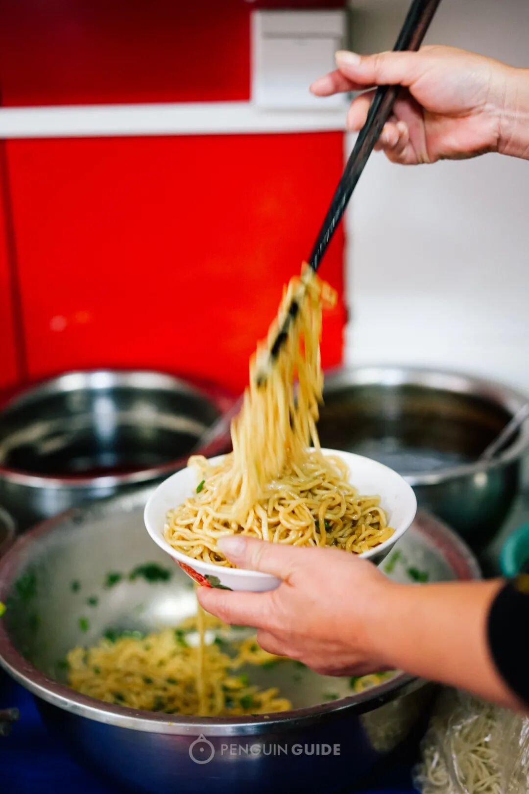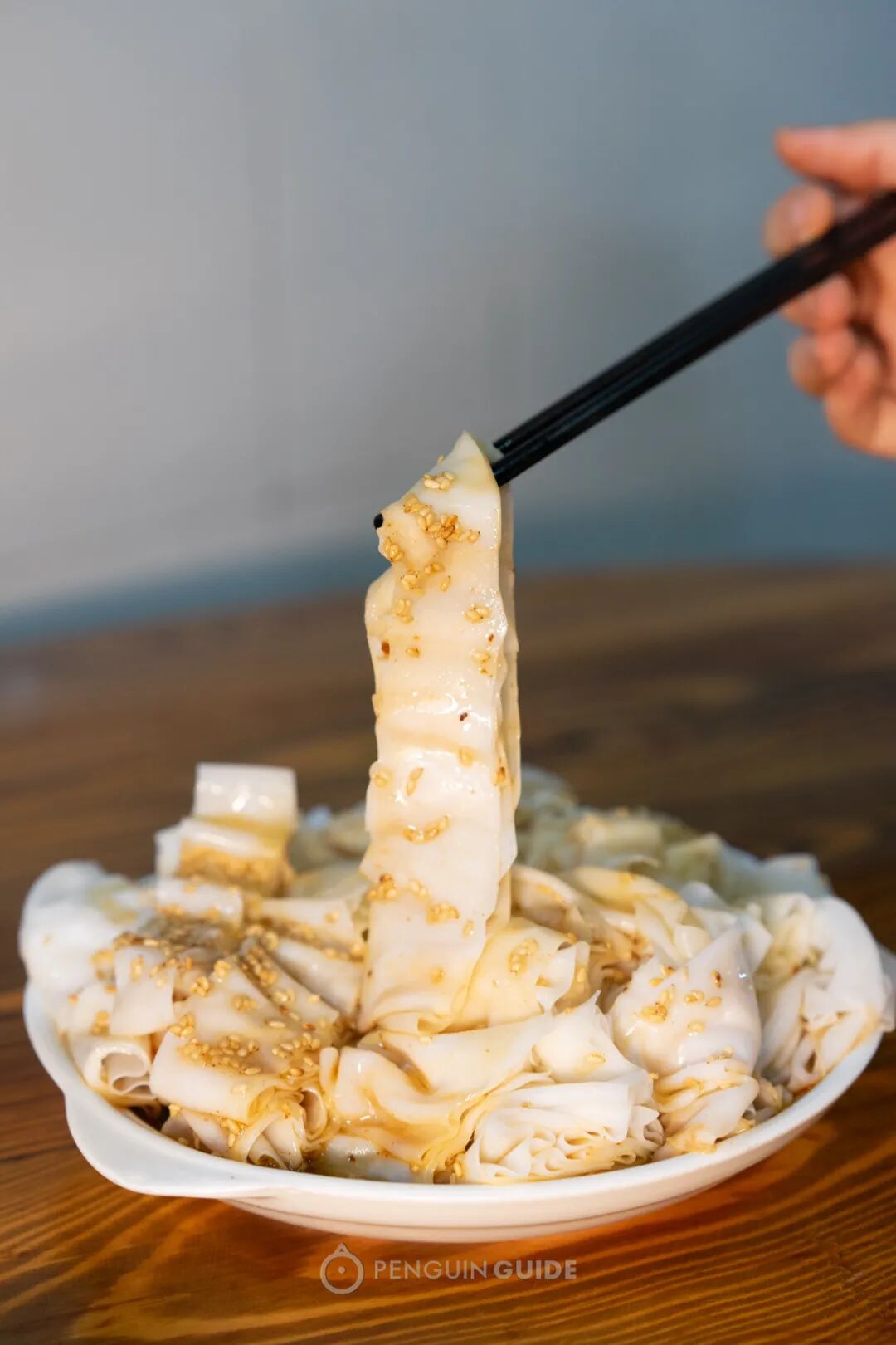 点睛之笔,要数这自家调味煎过的熟油,再洒上一大把芝麻,拌一拌,吃起来香、爽、滑。