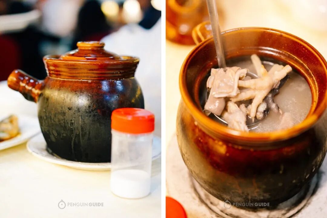 猪肚的另一常见用法是煲汤,加入鸡脚增加胶质,看见上桌时另外配盐,就知道是传统煲法。
