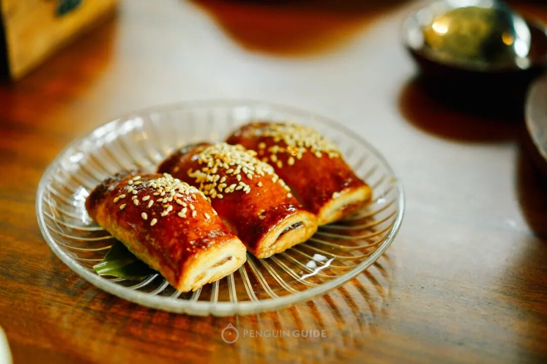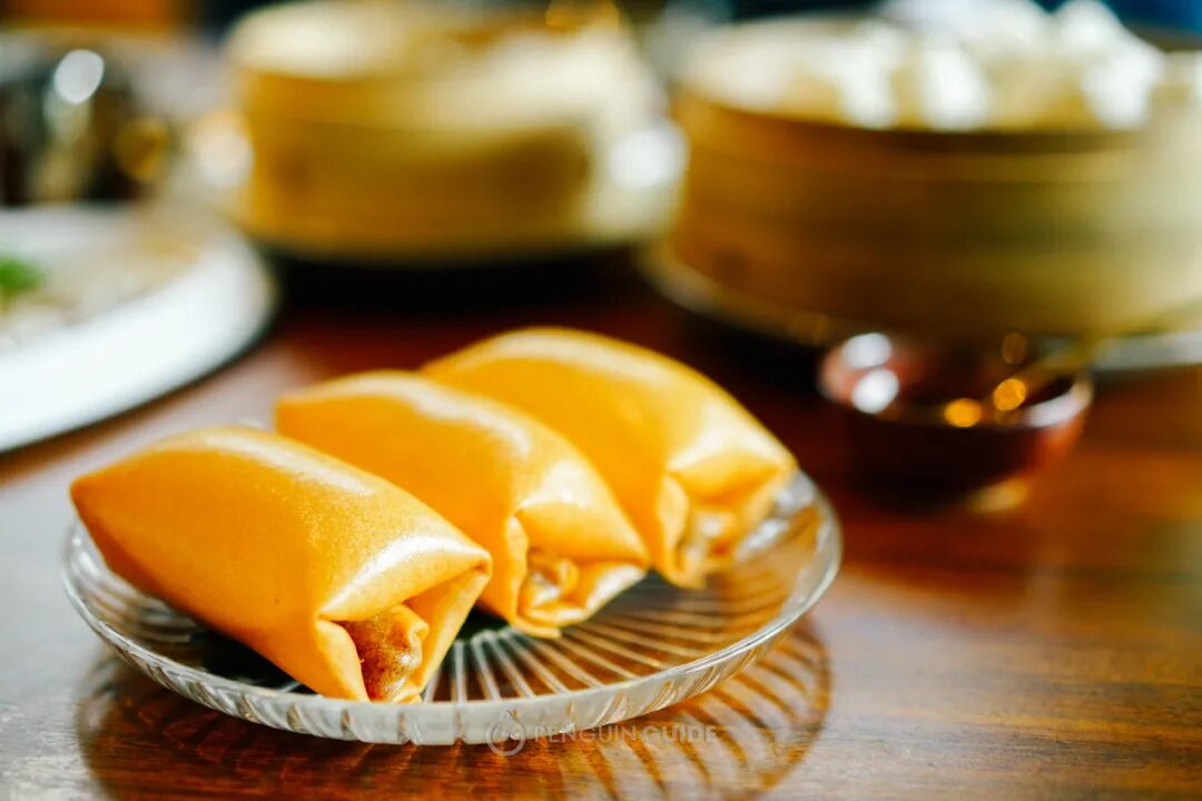 斋烧鹅,将腐皮炸得薄如纸,层层堆叠洒上大量芝麻,香气便铺陈开来,吃得让人上头。