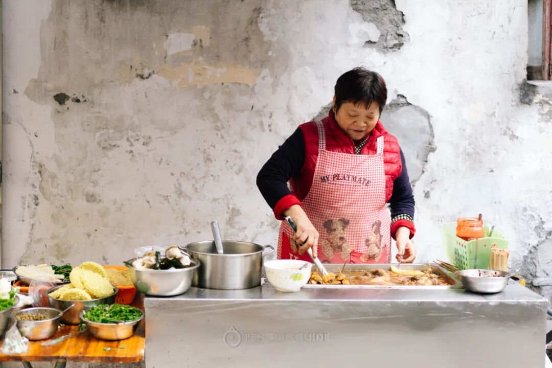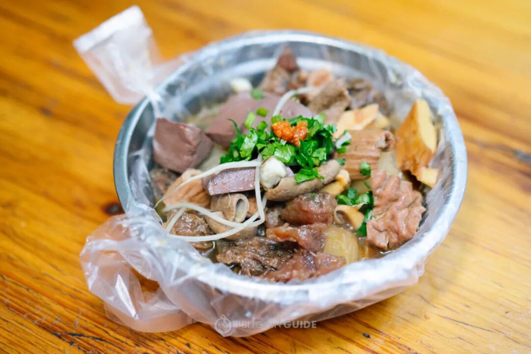 阿姨从早就开始炖煮牛杂,汁酱配比到家,香浓之味充分渗透牛杂内部,各个部位都剪一点,组成一大盆也不过20块钱,已经能吃得很满足。