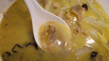 竹蛏汤由蛏干经泡发后煨制,蛏子的鲜味全都煨进汤里,嚼起来很有趣,在齿间duangduang回弹,最后渗出清甜的回甘来。