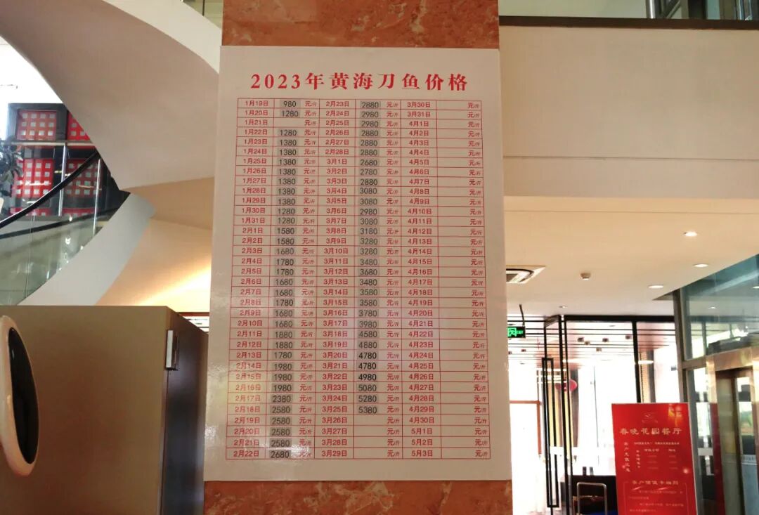 刚进门就能看到一块刀鱼看板赫然立在堂前,每日更新时价。从深冬一直到清明价格只涨不跌,现在已经是特价👇。:)