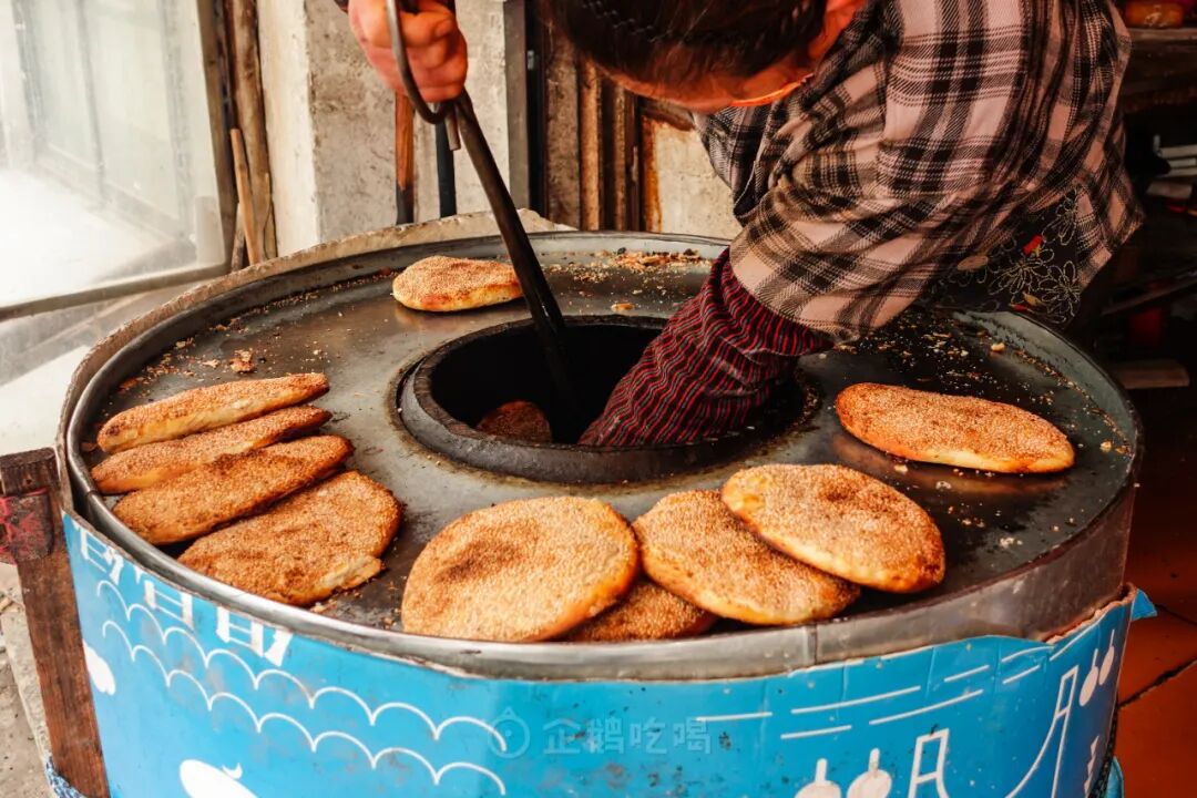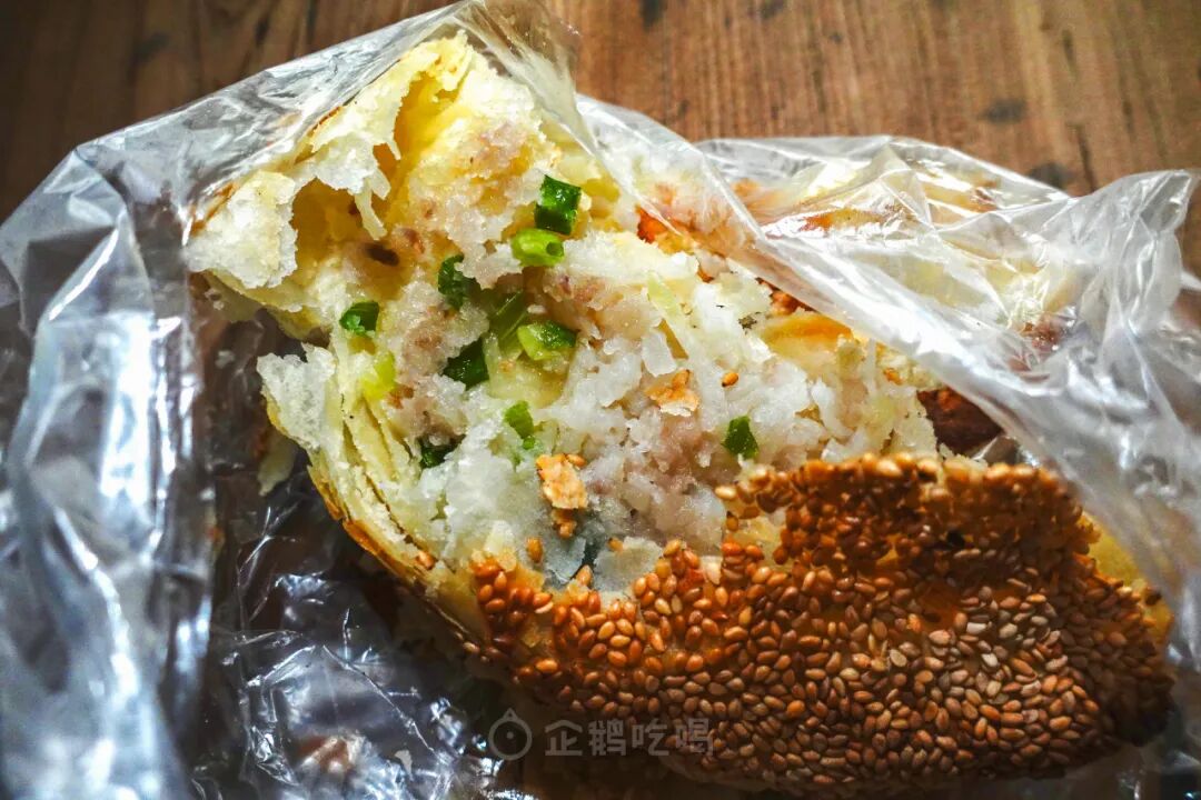 草鞋底(油酥、梅干菜各种各种夹心),裹满芝麻,极香。
