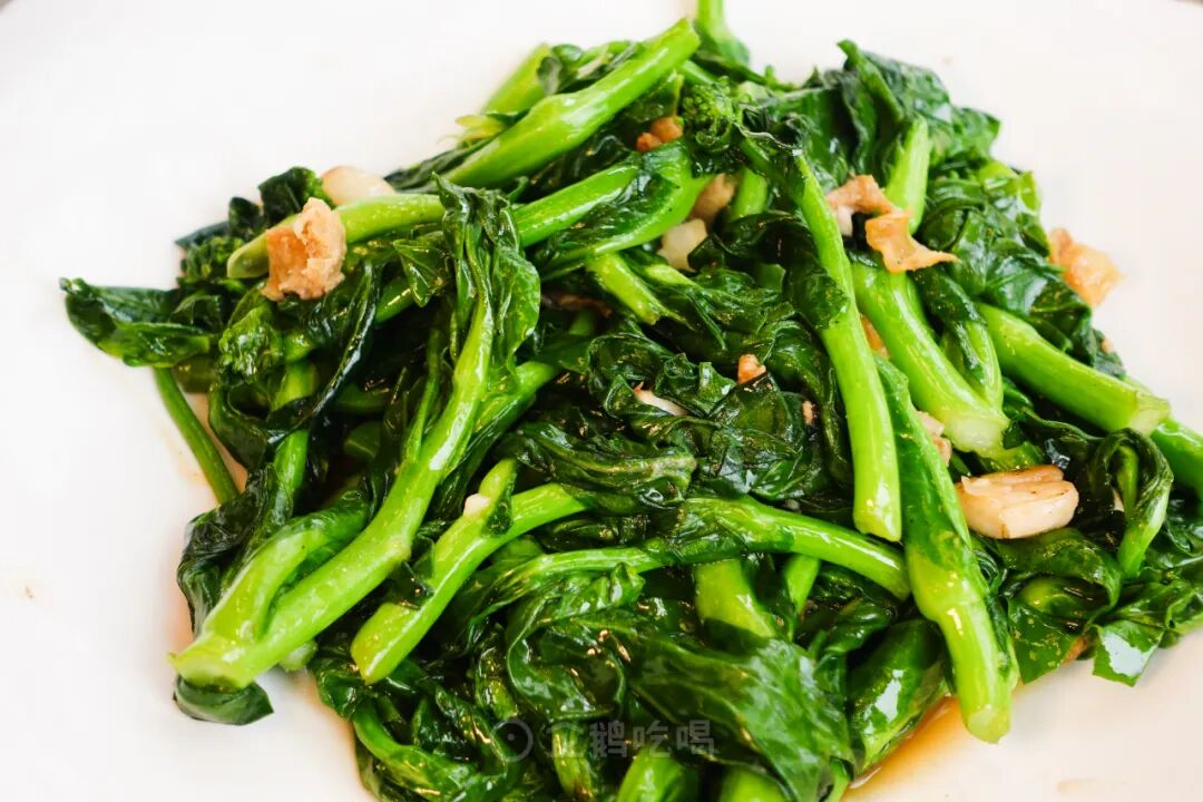 生炒菜蕻,用猛火断生脆度喜人,借了猪油渣的荤气,炒得活色生香。