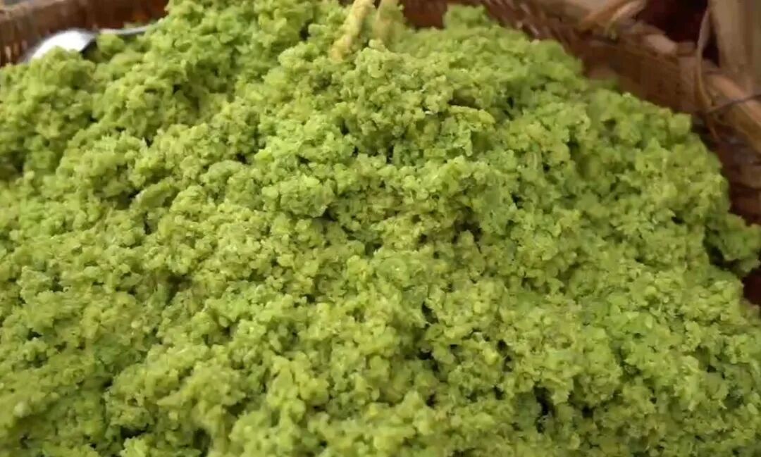 野生青蒿与糯米屑一同揉搓,清苦微焦,加热后草本气息涌动,很特别。