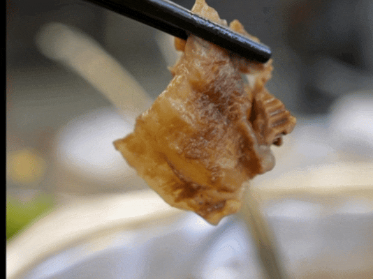 看这舒畅的纹理!牛骨汤温柔浸润过每一寸肉身,只留给你蘸一下沙茶酱的时间,就要马上送入口,软嫩间油香迸发。