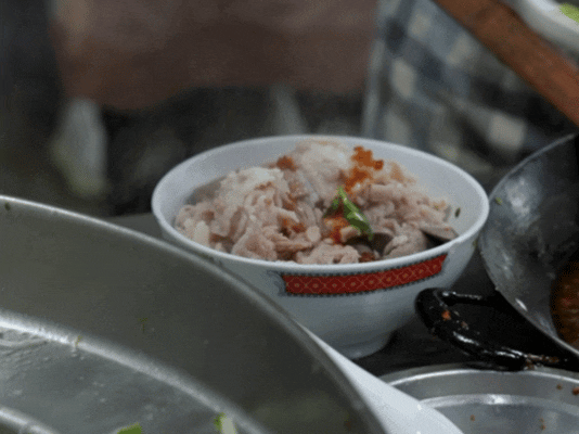 新鲜的猪里脊和猪前腩也很惊艳!前者滑嫩,后者带肥有油香。就这样满满当当盖着肉的两大碗,结账只要40元。