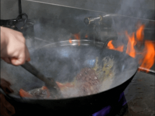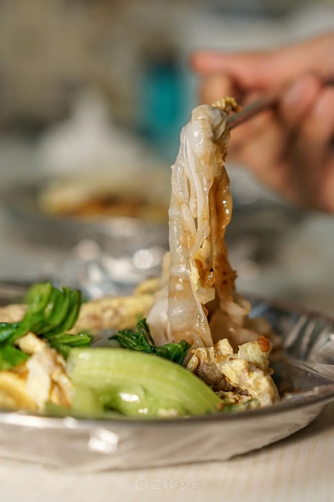 潮汕牛肉火锅还有一个隐藏加分项,在于最后收尾时的一碗好粿条。这家店是猛火分段式快炒,粿条炒到微微焦边,让美拉德反应赋予其香气。
