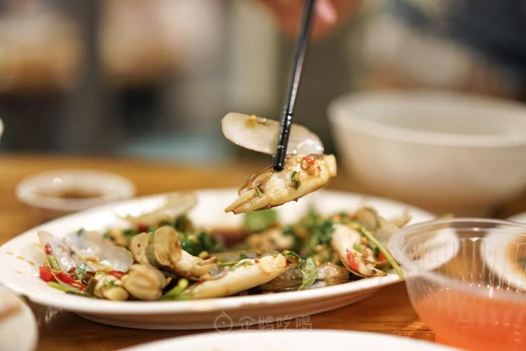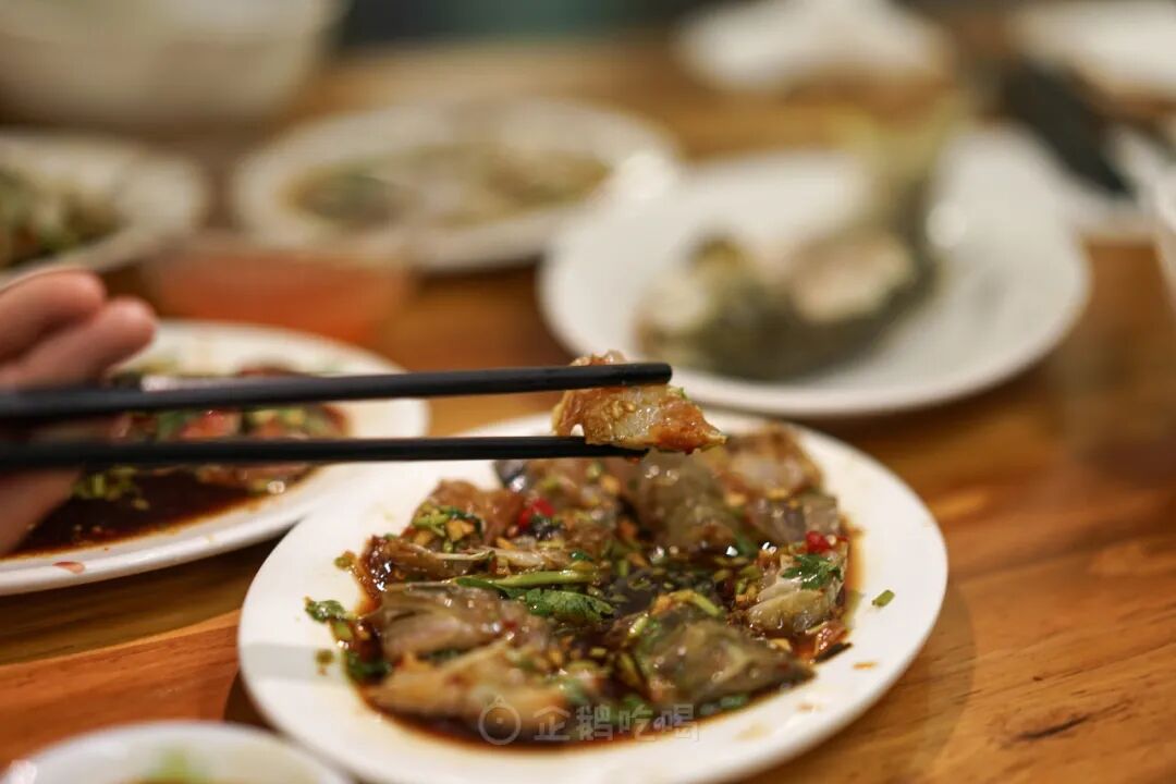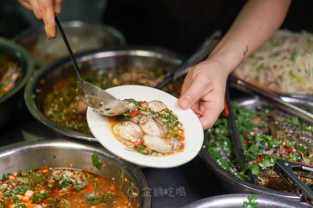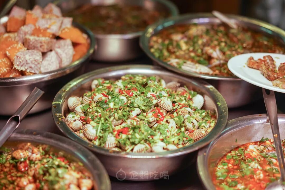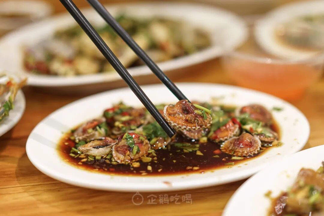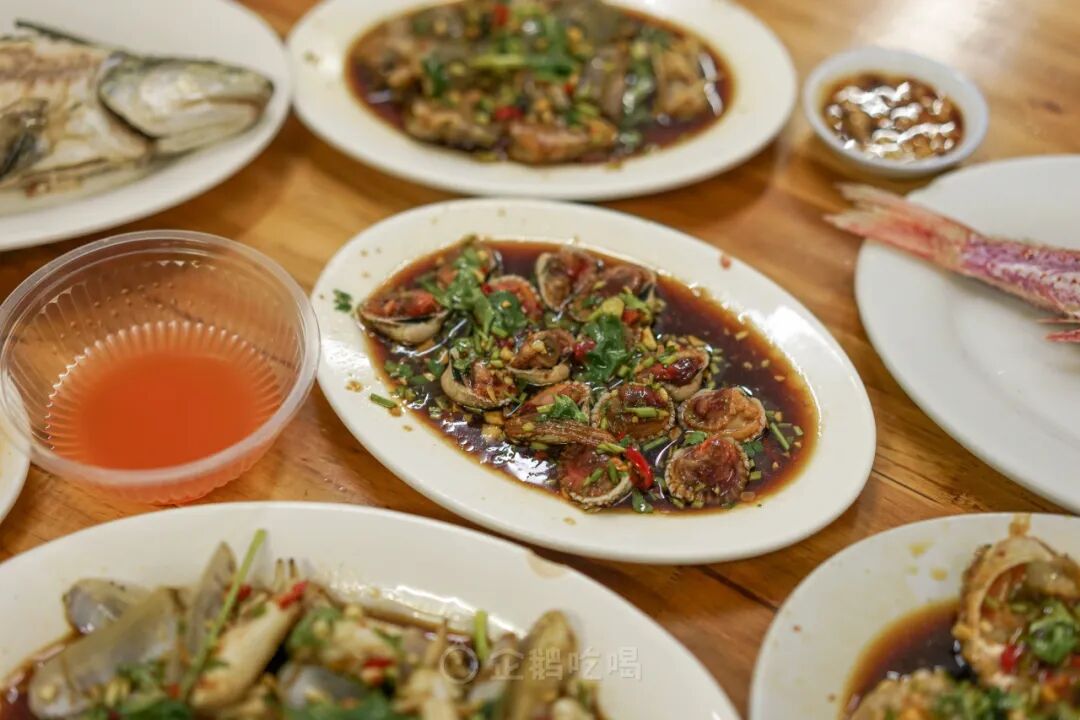 生腌的血蚧、生蚝、濑尿虾、沙虾、蛏子、鱼皮、花螺等,当日有什么新鲜就有什么。