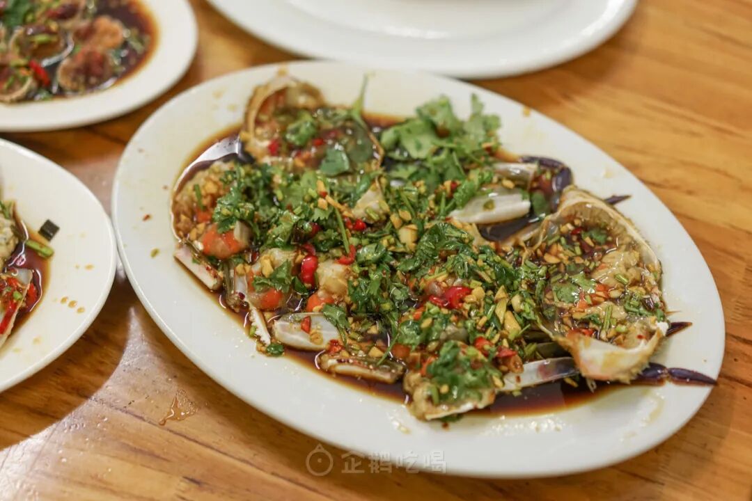 这家没有上百种品类的排场,但主要的杂咸都有,尤其是直接从旁边市场入货的小海鲜,做成一桌丰富的生腌阵。
