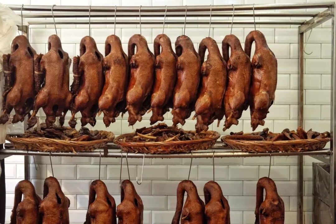 苏南的卤水还很注重油的运用,会加入食用油和肥肉,还会保留鹅自身渗出的鹅油,任其在卤水表面形成厚厚的油层。卤鹅浑体油亮,口感也更肥润。