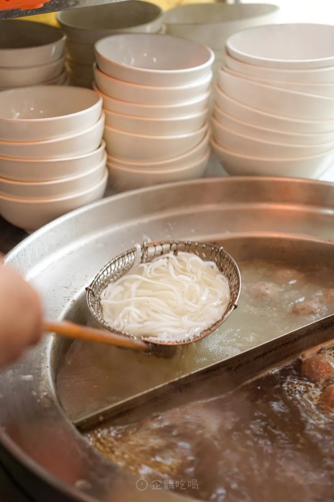 要是不爱干面,也可以配一碗粿条汤。用的是潮汕人公认最好吃的桐坑粿条,价格比普通粿条贵上一倍,体积细长,米香充足,口感爽滑微糯。