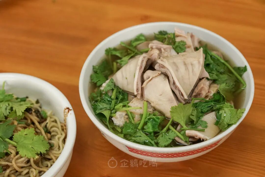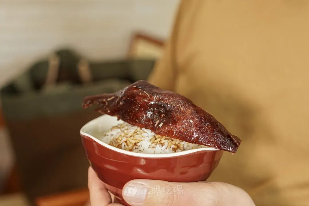 卤鹅头主要吃狮头鹅顶部的肉瘤,紧实有嚼口,而鹅颈嫩滑,可啜出骨香,鹅脖位带油脂,吃着酥香,所以很适合喝点小酒,啜着吃。