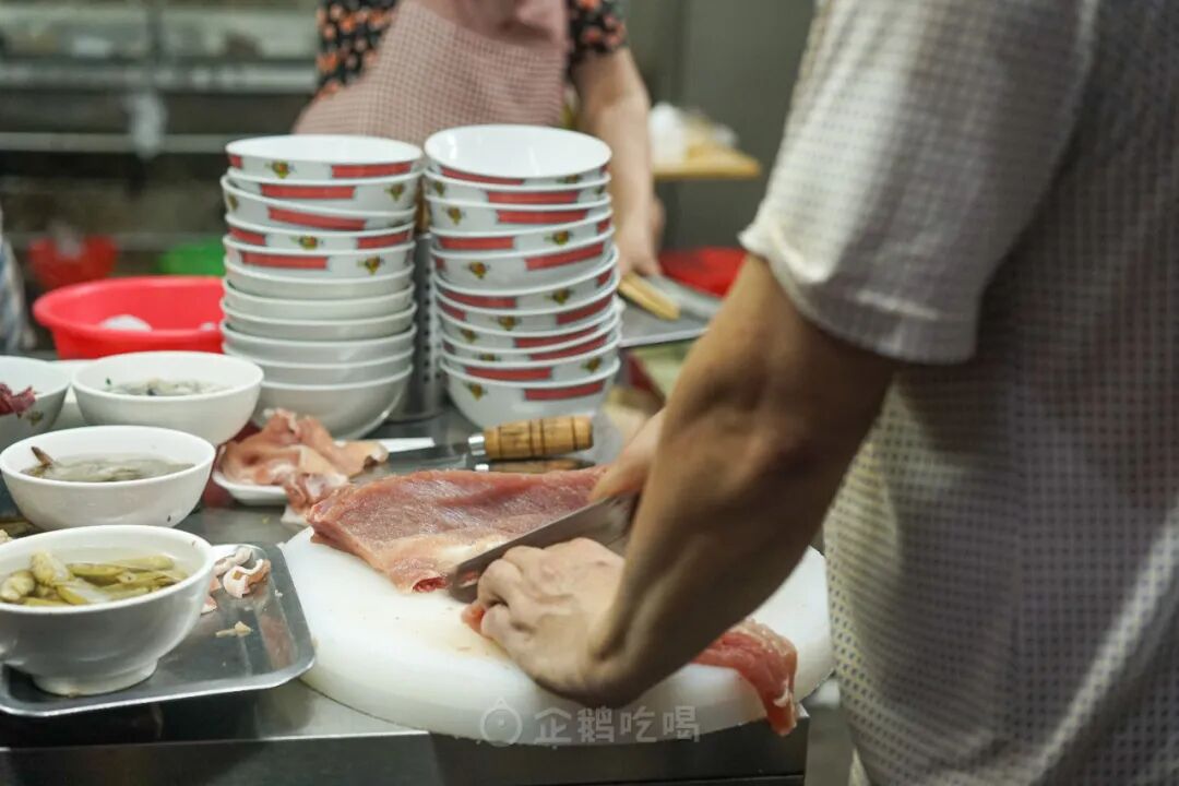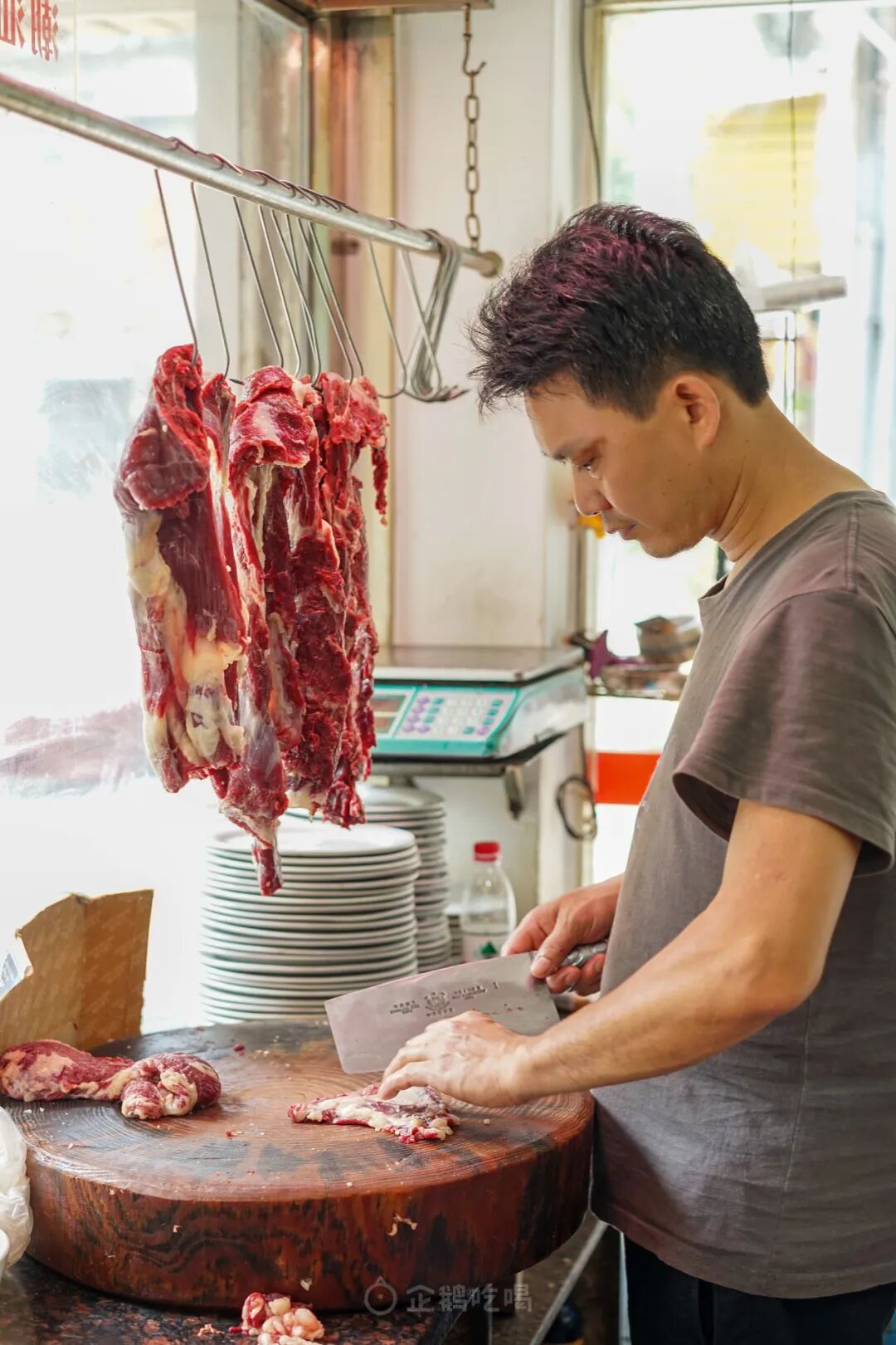 有多新鲜呢?猪杂来货就是对面的猪肉档,屠场送来还带着微温的猪只,新鲜滚烫分割出猪杂,几步路就能放上砧板,也算是farm from table吼。