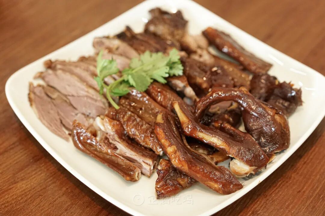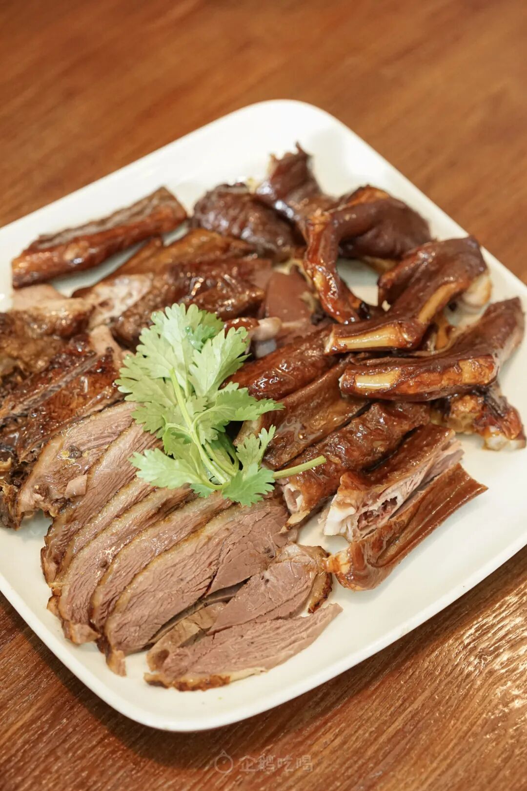 先来一份鹅肉+鹅脚+鹅翅拼盘:鹅胸肉带点皮下脂肪,油香突出;鹅翅鹅脚卤到外皮起胶,撕咬起来带着微微角力的柔韧,连带着关节骨头愈嚼愈香,妙呀。