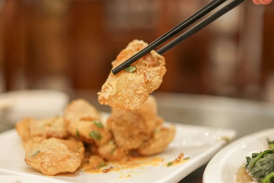 九肚鱼肉质易碎,这道咸蛋黄九肚鱼就炸得酥脆咸香,鱼肉嫩而不散,比常见的椒盐更上头。