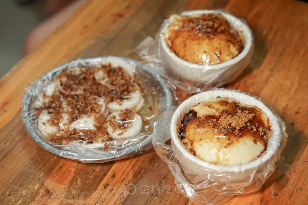 同样手工制作的水粿和仙草也值得一尝。水粿是用米浆蒸成小碗,浇上咸的菜脯和甜的糖浆,滑润柔软,咸甜交织的味道很有冲击力,但不是人人都能吃得惯。