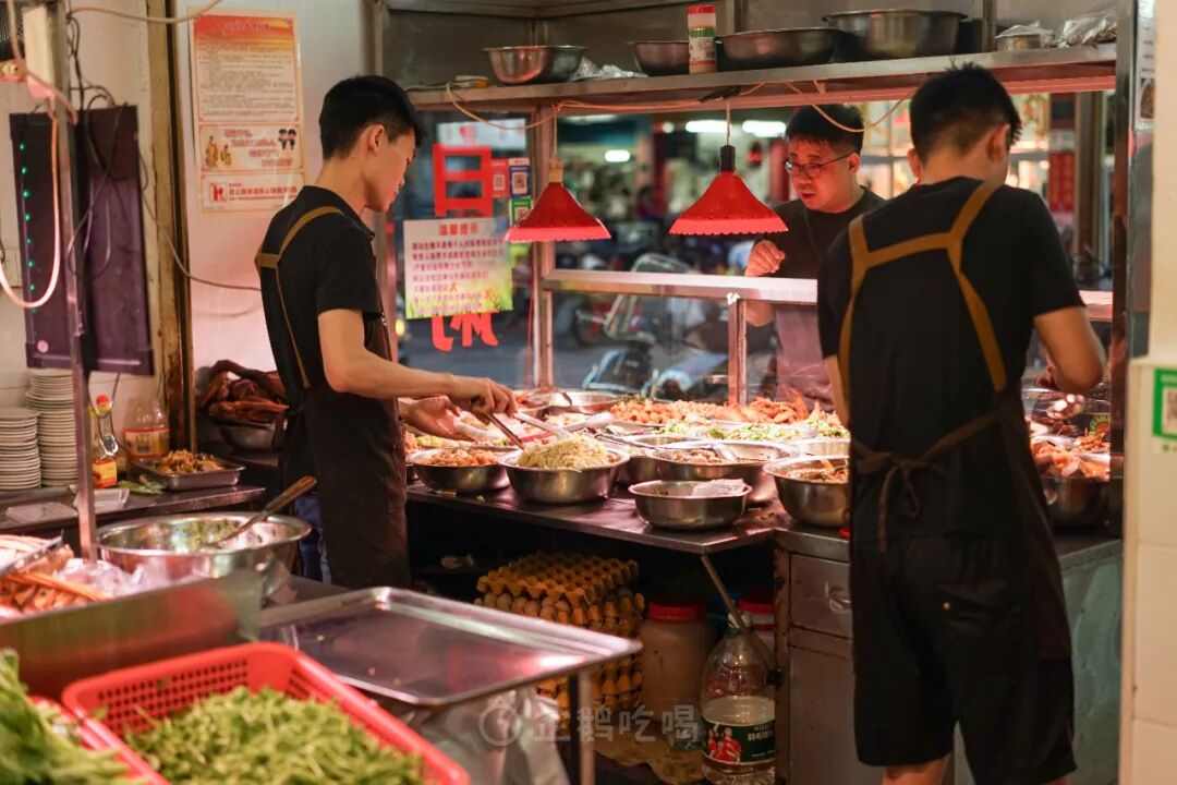 要见识汕头最有排场的宵夜,还是要吃夜糜。也就是一碗白粥,搭配数百款杂咸打冷(汕头的小菜与冷盘)的“骄奢”吃法。