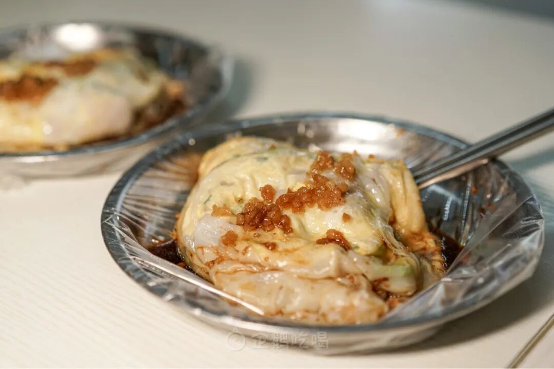而作为宵夜的肠粉,选料更加丰富,肉类与海鲜交织,蒸出的米皮也偏厚,口感实在。