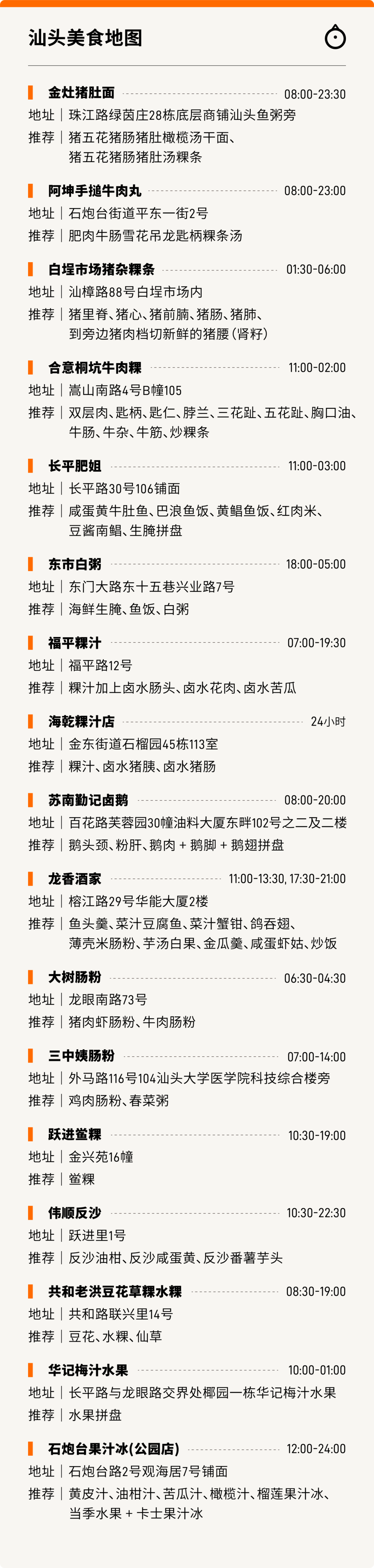 相比之前的推荐,十几家店铺推荐全数更新,是我们几年来走遍汕头大街小巷吃出的心血,本地人都认证的地道好吃。