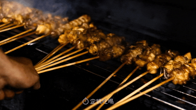 鸡腿、鸡胸、鸡尖,甚至连整根的鸡脖子都串在其中,在碳烤架上来回转,逐渐成了漂亮的美拉德色。