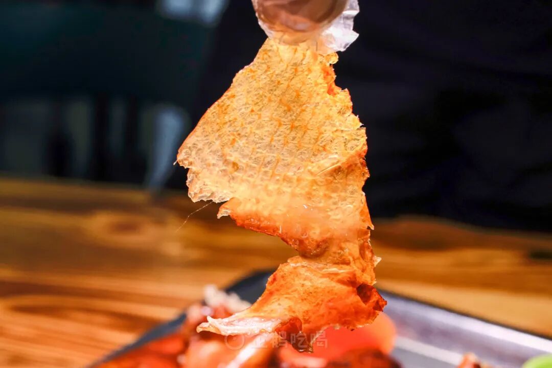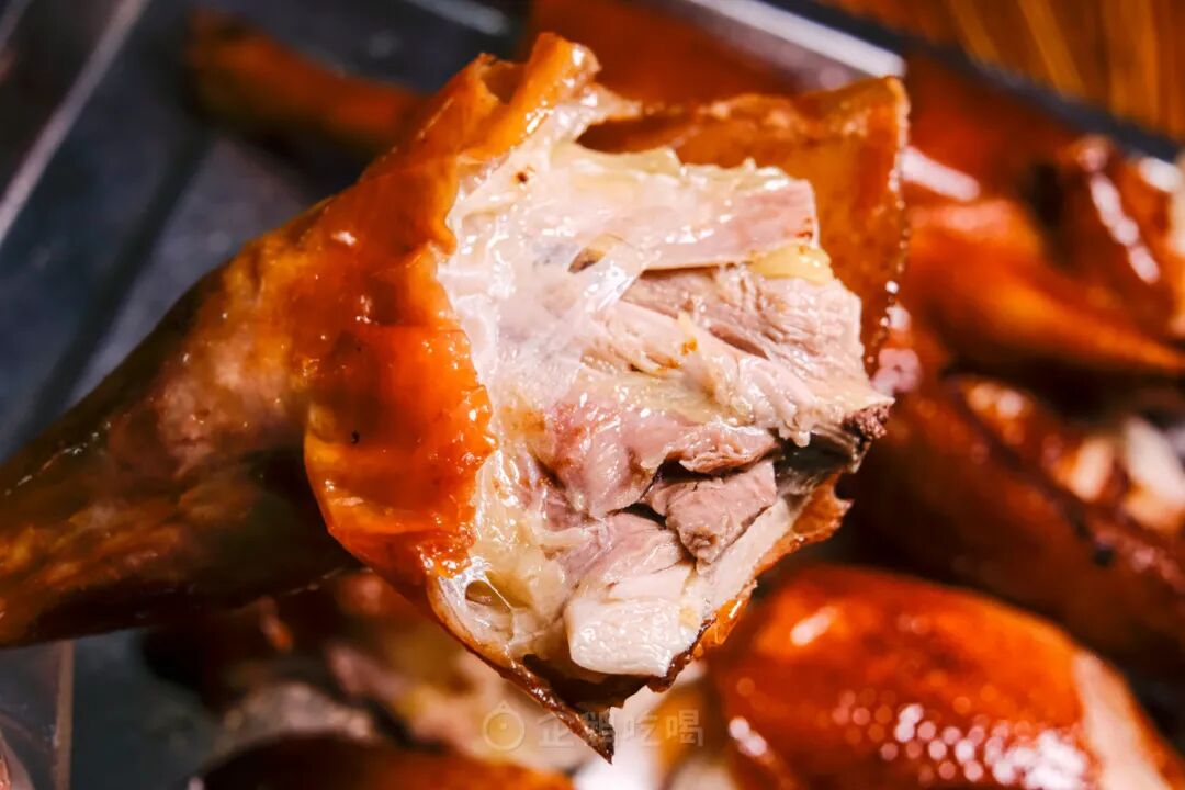 鸡皮入口松化,甚至有几份北京烤鸭的鸭皮口感,酥脆又随之微微融化。