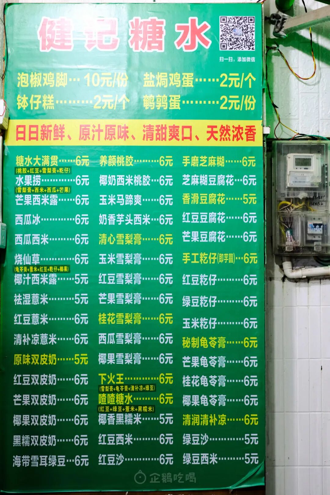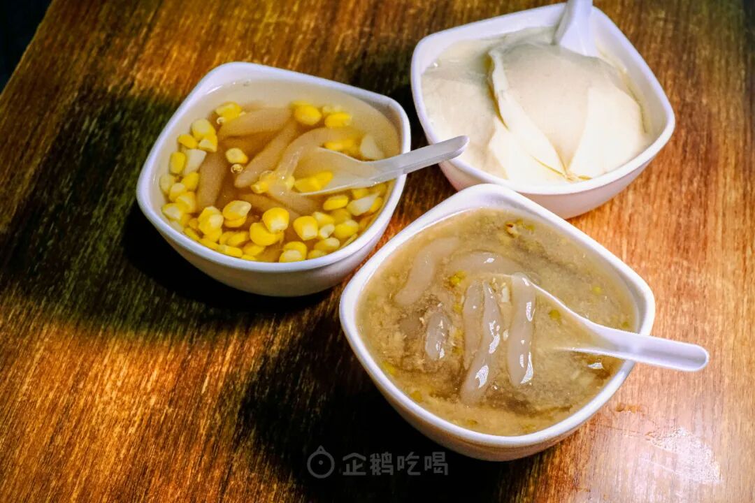 贴心的是,基本每一家糖水店里总能有几份咸点搭配,可以点一盆盐焗鹌鹑蛋慢慢剥着吃,既不会太饱,也能解腻打牙祭,边喝糖水吹着晚风,是此地独有的一份惬意。