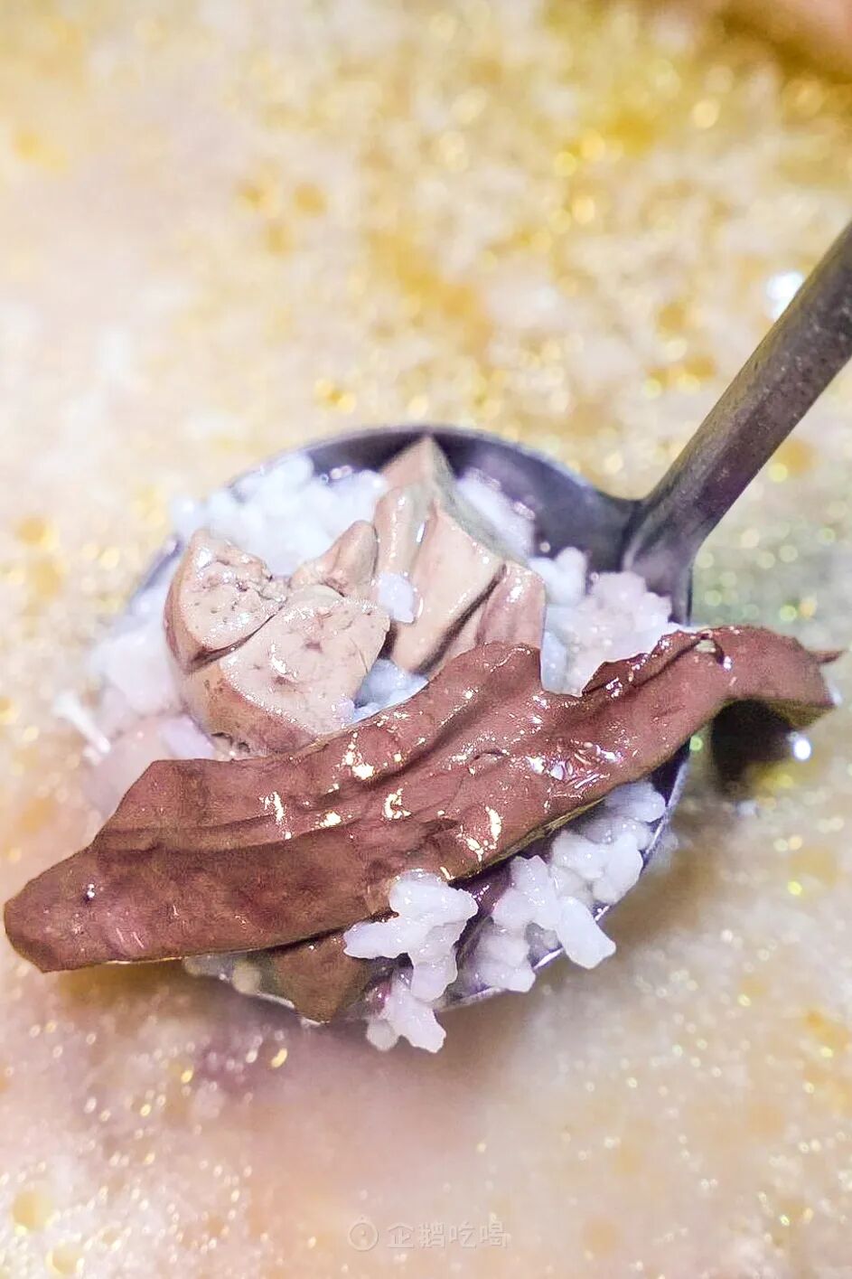 粥米稠密绵滑,给猪杂都上了一层柔顺的米浆感,能喝出粥底的白胡椒的咸鲜调。