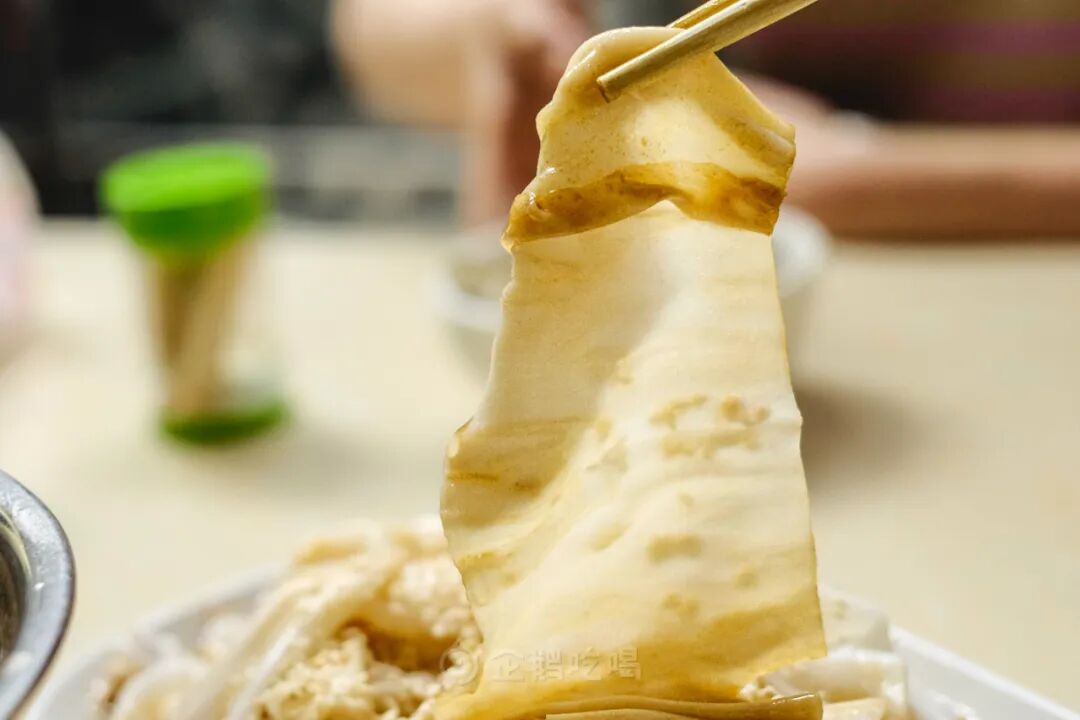 捞粉的形态有很多种,知粥常乐的捞粉薄如轻纱,宽大的粉皮堆垒起来,口感柔顺,每一片粉皮都能挂满酱汁。