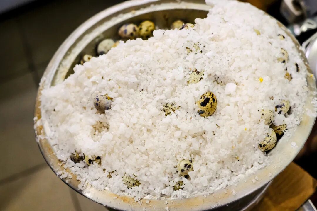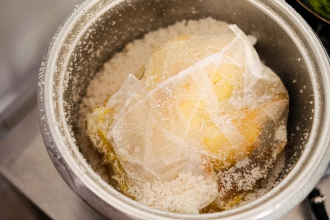 我们来吃的这家江头佬盐焗鸡,依旧以传统的老式电饭煲+粗盐+纸包来做盐焗,盐焗的也不止是整鸡,乳鸽、猪腰、猪尾都可盐焗。
