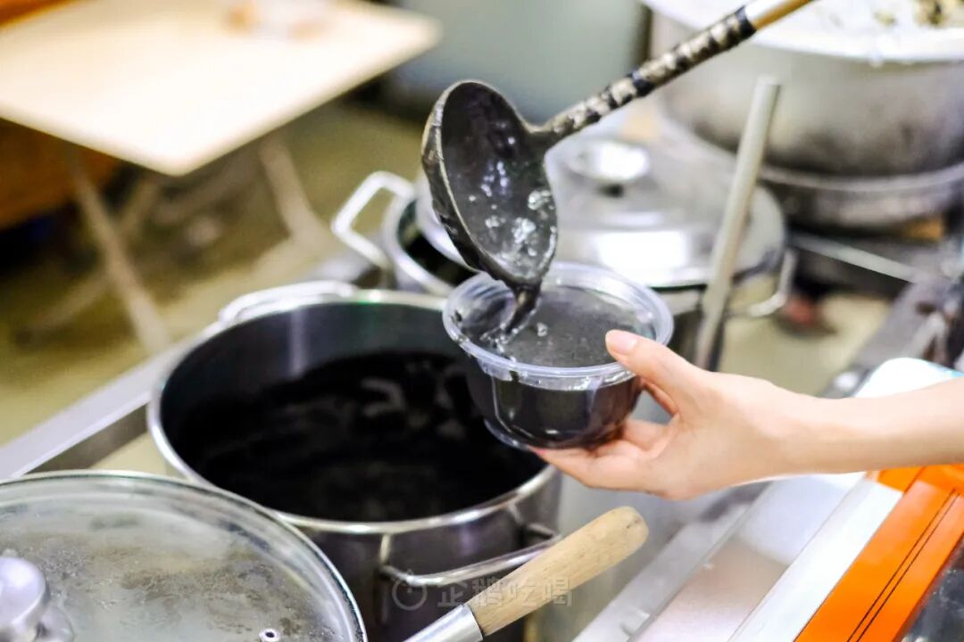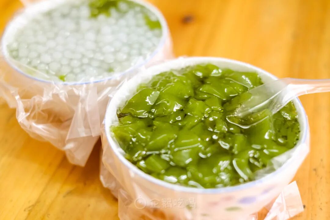 比起仙草的药材香,新鲜的凉粉草冻更偏植本的清新香气,微微带点薄荷的凉意。草本香加以淡淡碱味,口感软弹,落胃消暑。