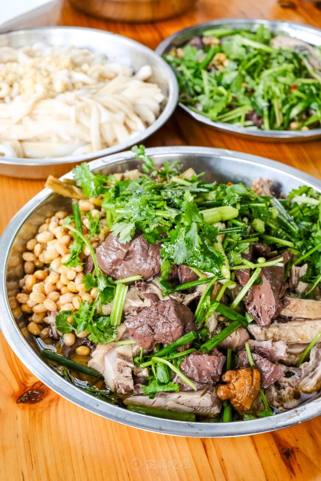 点完单,现斩鸭肉鸭杂,再麻利地淋上甜丝丝的韭菜香油,撒满红葱、香菜,配着芋梗、沙姜、黄豆,交织出清野香气,很少吃到如此清新风格的白切鸭!