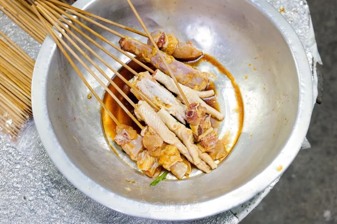 烧烤哪哪都有,而茂名流行的烧烤单位,是以一整只鸡来计量的。整鸡串烧在电白水东有不少,每家店的招牌也很直接:活鸡现杀,现杀现串现烤。