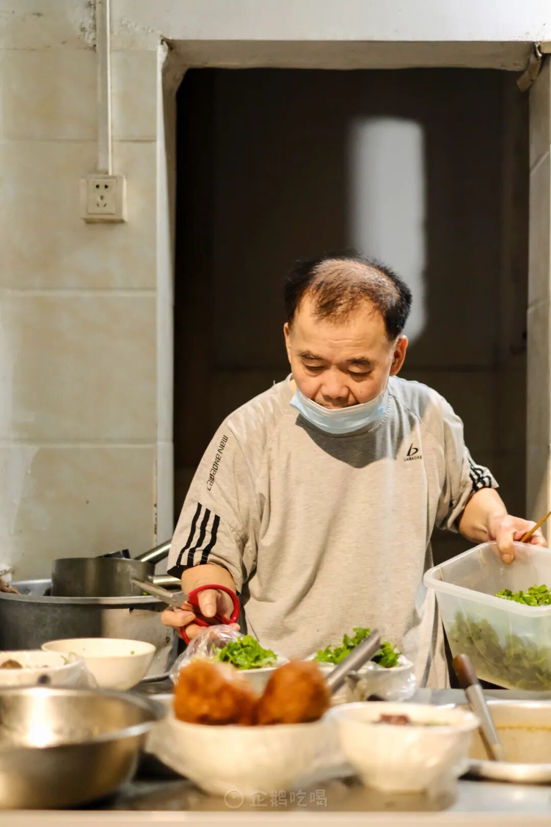 这家合岗鸭粥店,还坚持在用最传统的方式做白切鸭:硕大一口柴火锅灶,草药汤底里面同时炖煮着七八只鸭子,远远就能闻到鸭香。