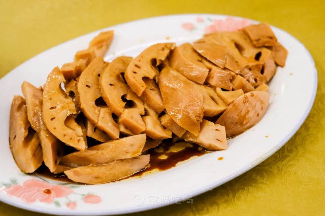 食香油鸡,本地固定搭配是一碟粉藕。同样一套调味,在这里反倒是更衬粉藕自身的清甜与香气。