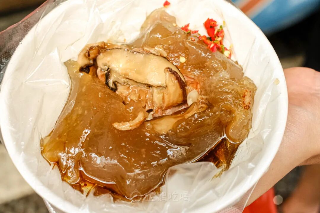就算橄榄菜+香油二重咸香加持,也依旧能吃出米香,口感细腻有弹性,软嫩滑爽,颇有点茂名本地凉粉的意思。