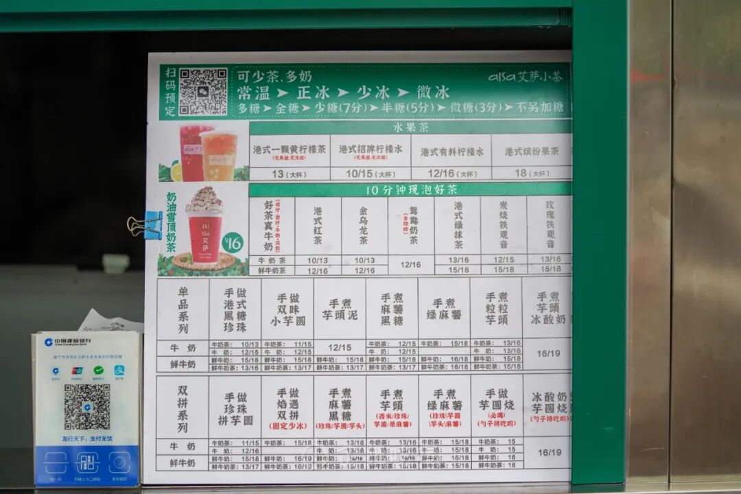 奶红、奶绿各提供轻脂乳(讲真比鲜奶茶更浓郁,店员声称不含反式脂肪)、鲜奶两种选项,加两元可以换味全鲜奶。12元一杯的鲜奶茶,无可挑剔啦。还有2家