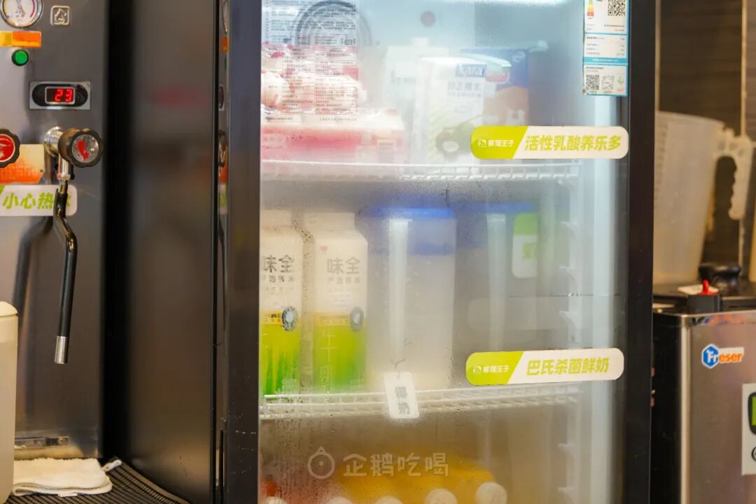 原料用得挺好,奶茶一律用的鲜牛奶(皇氏鲜牛乳),水牛奶用的则是悠纯。