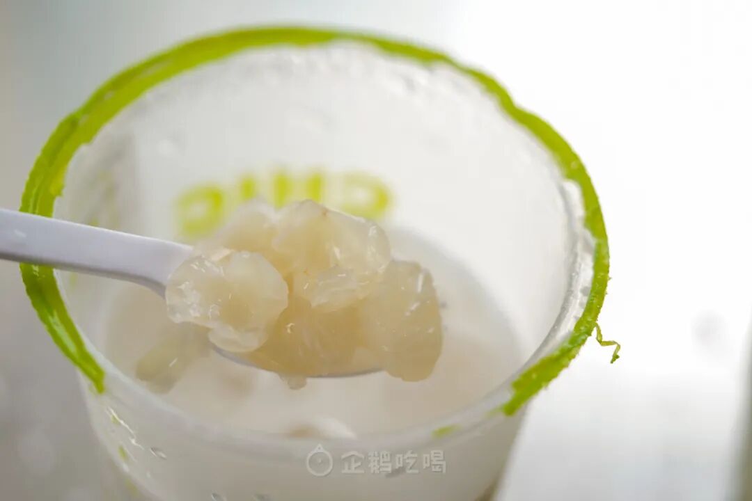 在椰奶额外加入了少量龙眼汁,再放入大量鲜脆的新鲜龙眼肉,从香气到吃口,龙眼滋味都非常浓郁!