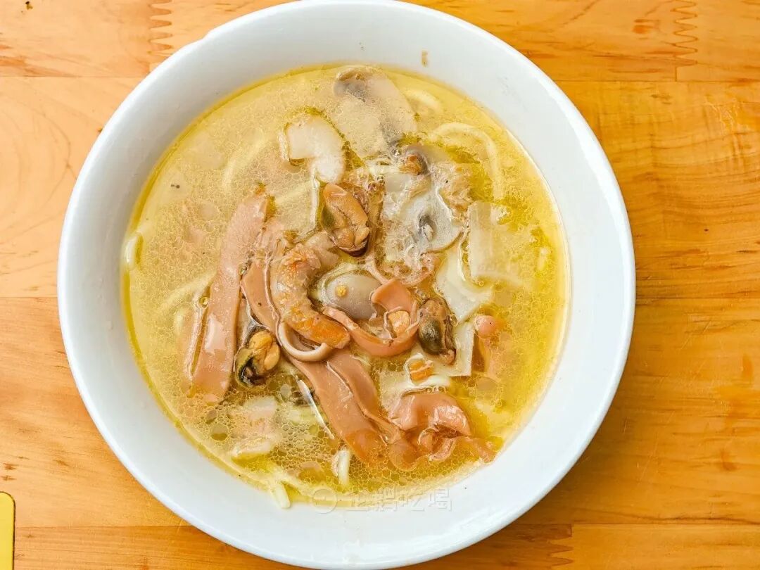 一般的海味面鲜,但干货特有的腥臭味总在背后若隐若现,但幺怪面的海味面鸡汤为底,各式各样的海货肉眼可见的高品质和干净: