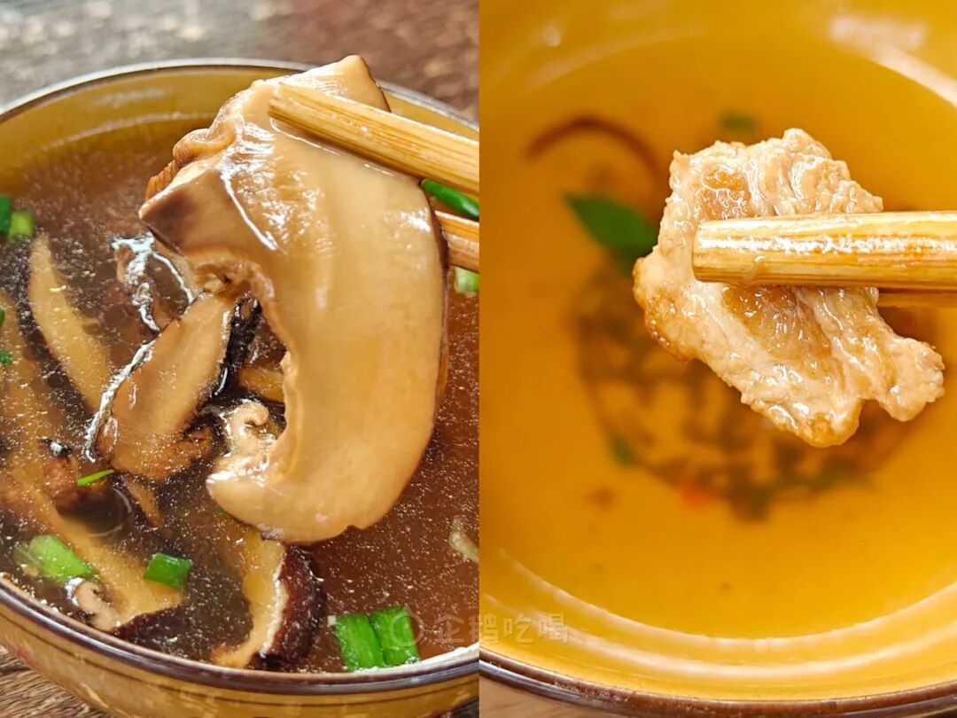 蘑菇切片、鸡骨滚刀、玉兰片切片,厚薄均匀,大小一致,从切配就能看出老板的用心。