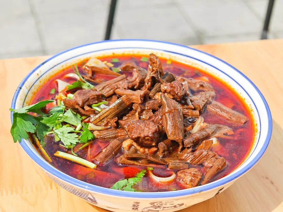 长时间的炖煮更是让牛肉和笋子的鲜味溶入汤中,薄而宽的面条顺着汤汁进肚,伴随着此起彼伏的挞挞声,真真切切的感受人间烟火气。(荥经当地的牛肉炖的软烂,虽然这家面十分地道,美中不足的是牛肉稍微有些柴。)