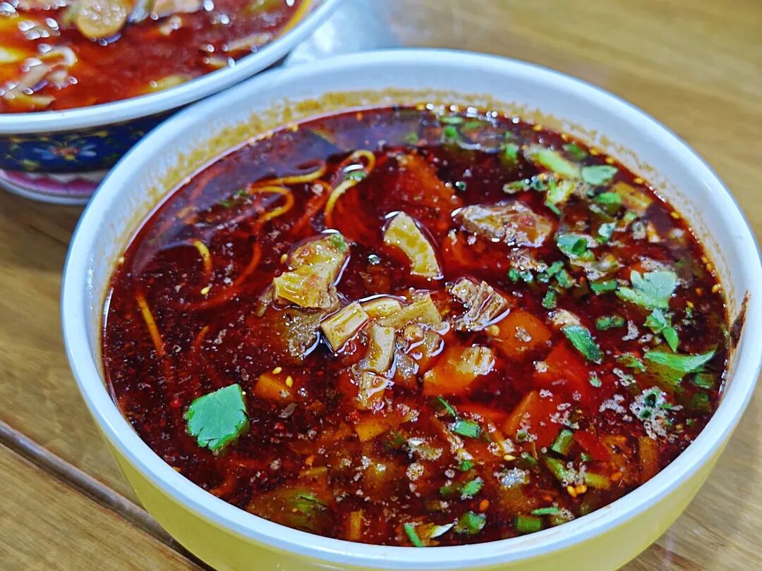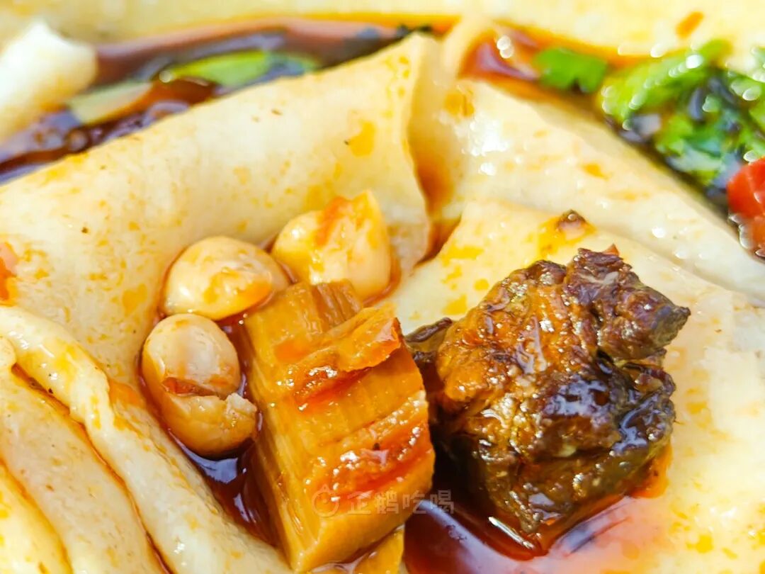 臊子功夫在明,还有暗器藏在碗底,现熬的熟油海椒油光红亮,还有川菜绝活复制熟酱油(各种香料熬制而成),猪油、芝麻酱、葱花、蒜泥......吃到最后一口都不腻。